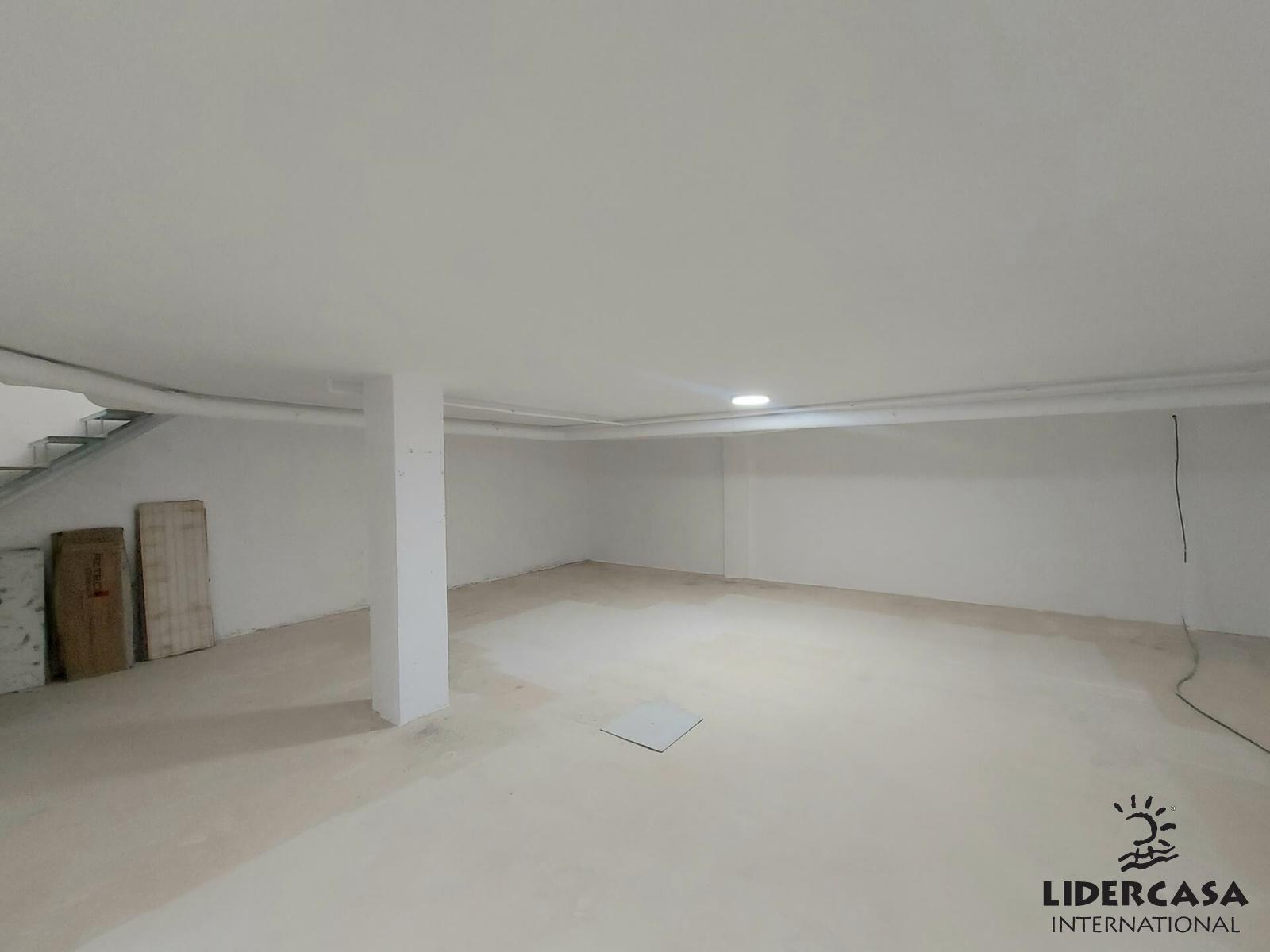 Escaleras conducen desde elsalón hasta el sótano sin terminar. Esto es perfecto para usar como una oficinaen casa, sala de juegos o simplemente para el almacenamiento.